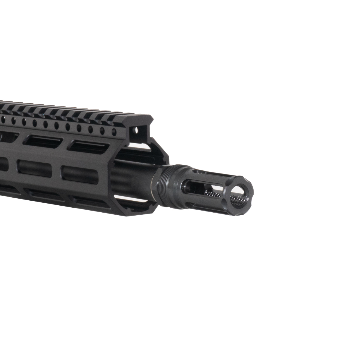 Muzzle Device Details: Closed-tine, fully shrouded (caged) for superior flash suppression