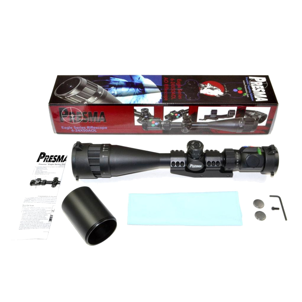 Presma EX Series Professional 6-24X50 Precision Scope | Adjustable Objective | RXR RGB Illuminated Reticle | 6061-T6 Aluminum | Integrated Bubble Level | Complete Package