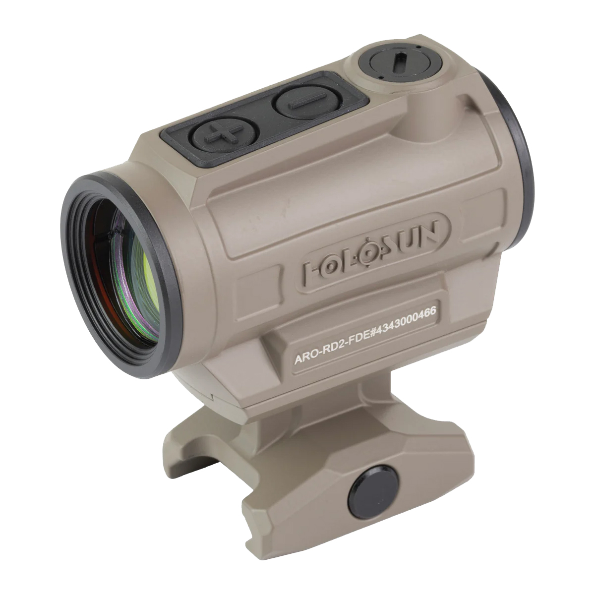With an impressive battery life of 25,001 to 50,000 hours powered by a CR2032 3V lithium coin battery, maintenance is minimal. The optic is finished in a Flat Dark Earth (FDE) color, providing a tactical aesthetic that complements your setup. Choose the Holosun ARO for reliable performance and functionality in critical situations.