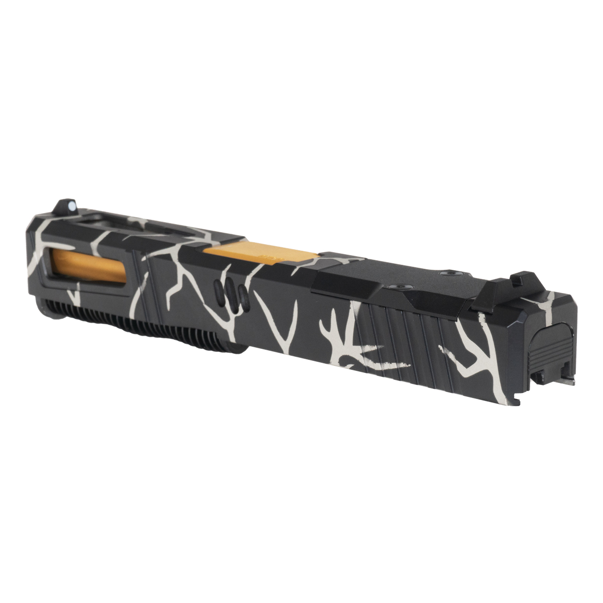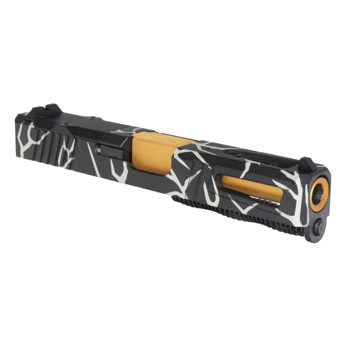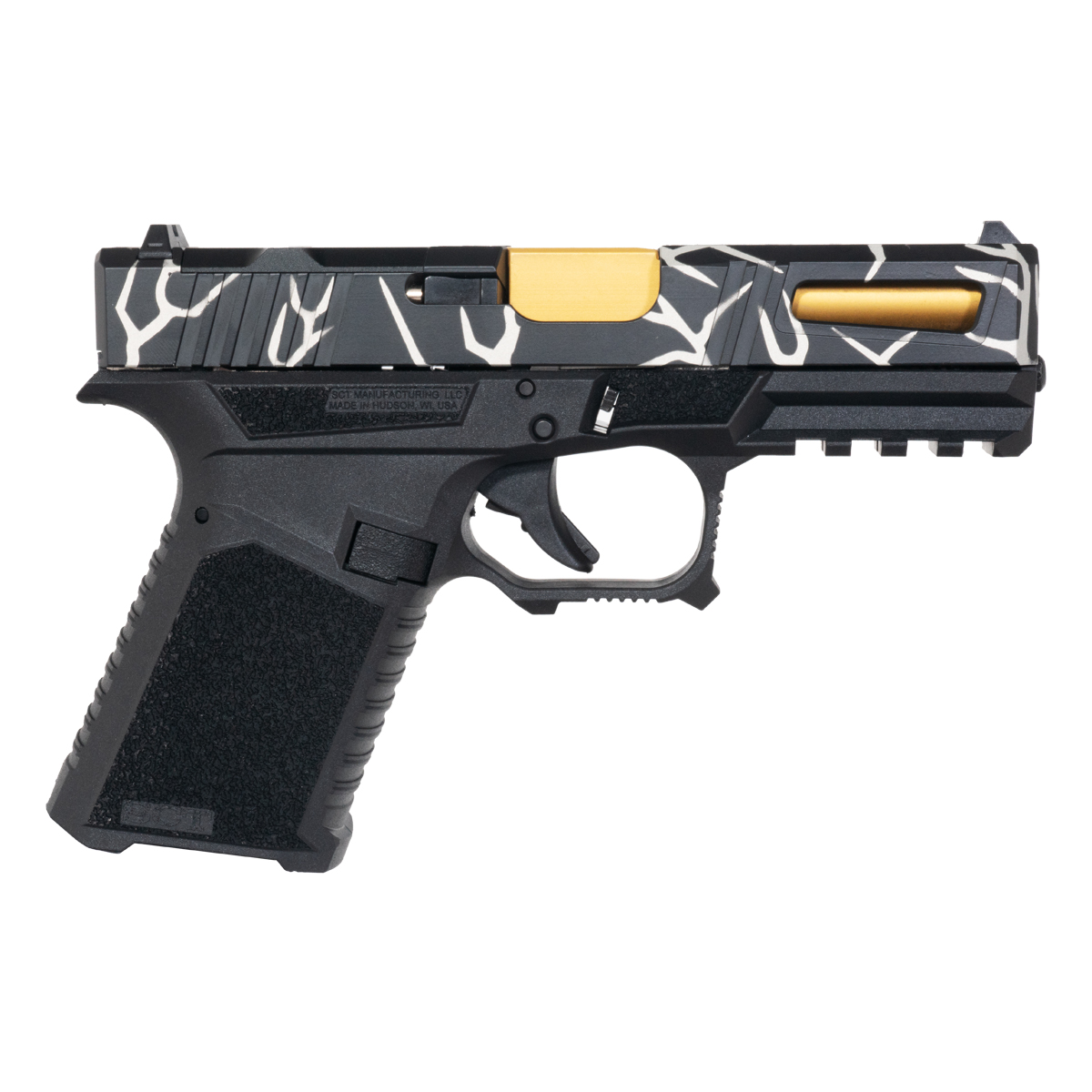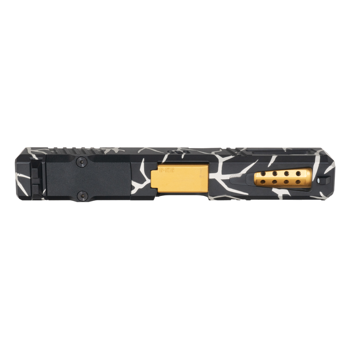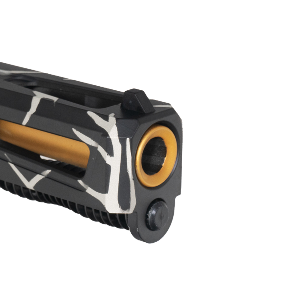 The highlight of this kit is the Gold TiN barrel, featuring a crown-cut ported design that aids in recoil management. Made from quality steel, the barrel has a 1:10 twist rate, ensuring precision and reliability. This complete slide kit is an ideal choice for gunsmiths who value performance parts in firearm customization and wish to maintain freedom with their equipment.