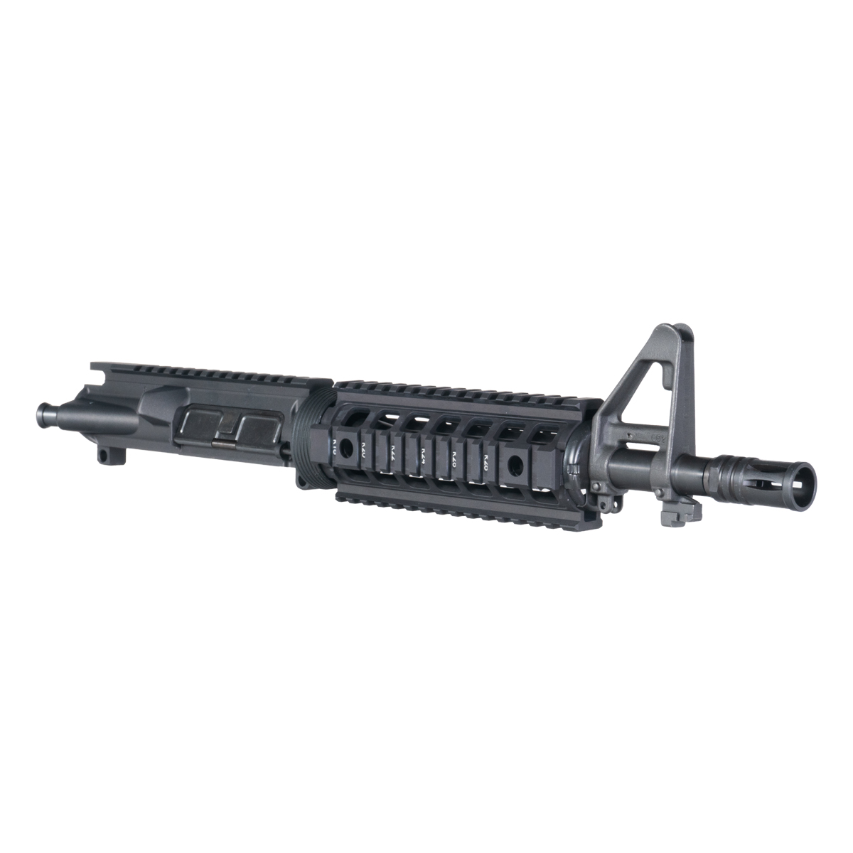 The 7075-T6 aluminum upper receiver offers exceptional strength-to-weight ratio, reducing overall upper weight while maintaining structural integrity for reliable long-term performance. The anodized finish provides enhanced durability and corrosion resistance for demanding shooting applications. The carbine-length quad-rail drop-in handguard is constructed from aluminum, providing four-sided Picatinny rail coverage at 12, 3, 6, and 9 o'clock positions. This quad-rail design allows for versatile accessory mounting of lights, laser devices, vertical grips, and other Picatinny-compatible accessories at multiple positions. The drop-in design ensures straightforward installation around the FSB, making assembly efficient for gunsmiths. The quad-rail configuration provides maximum mounting flexibility for shooters who require extensive accessory options in a compact platform.