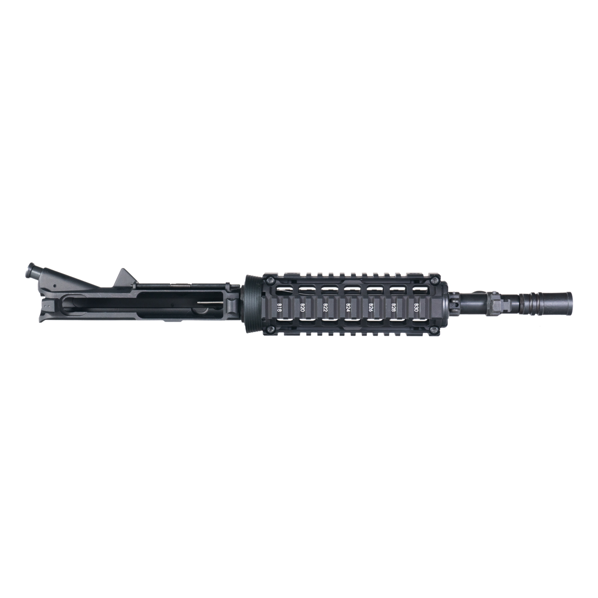 - Carbine-Length Quad-Rail Drop-In Handguard: Aluminum construction with four-sided Picatinny rails for versatile accessory mounting