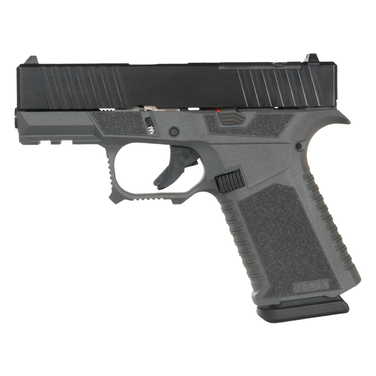 The complete handgun boasts a performance-grade steel barrel with a black nitride finish and a twist rate of 1:10, ensuring consistent accuracy. The slide is finished in black nitride, equipped with front and rear serrations and an RMSc plate for optics compatibility. Low-profile front and rear sights provide quick target acquisition. With a magazine capacity of 10 rounds, this Glock 43/43X-compatible handgun strikes a balance between compactness and firepower, making it a reliable choice for those who prioritize performance.