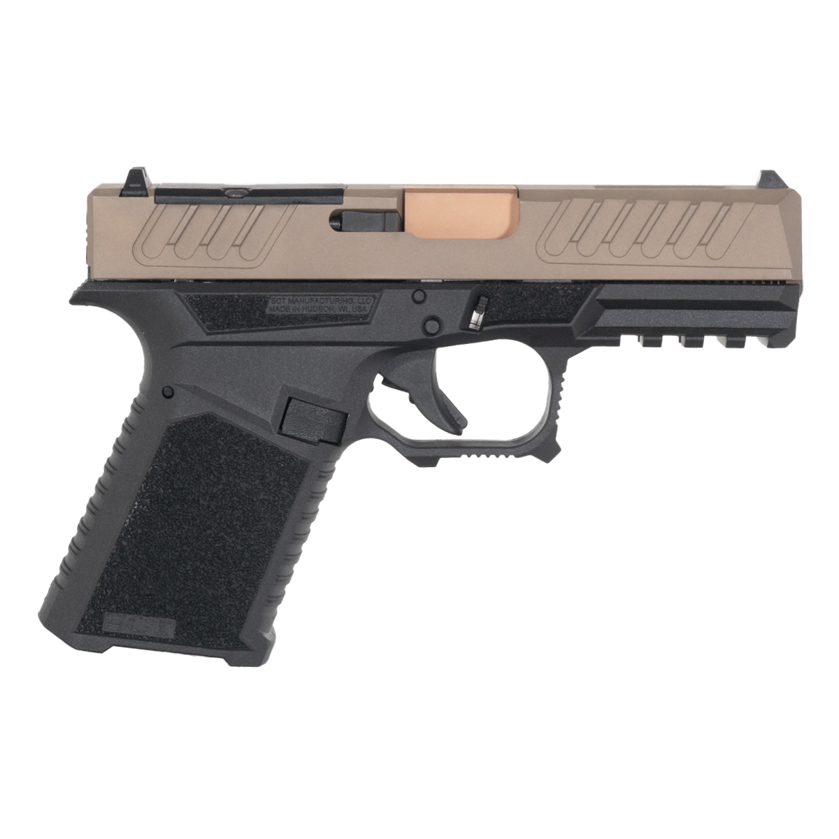 The Stiletto Crowned Copper PVD Barrel G19 Gen 1-3 Compatible 9MM FDE RMR Complete Slide Kit is engineered for Glock 19 models from generations 1 to 3. This kit includes a high-precision 416R stainless steel barrel featuring a durable PVD finish in a striking Bronze color, ensuring longevity and performance.