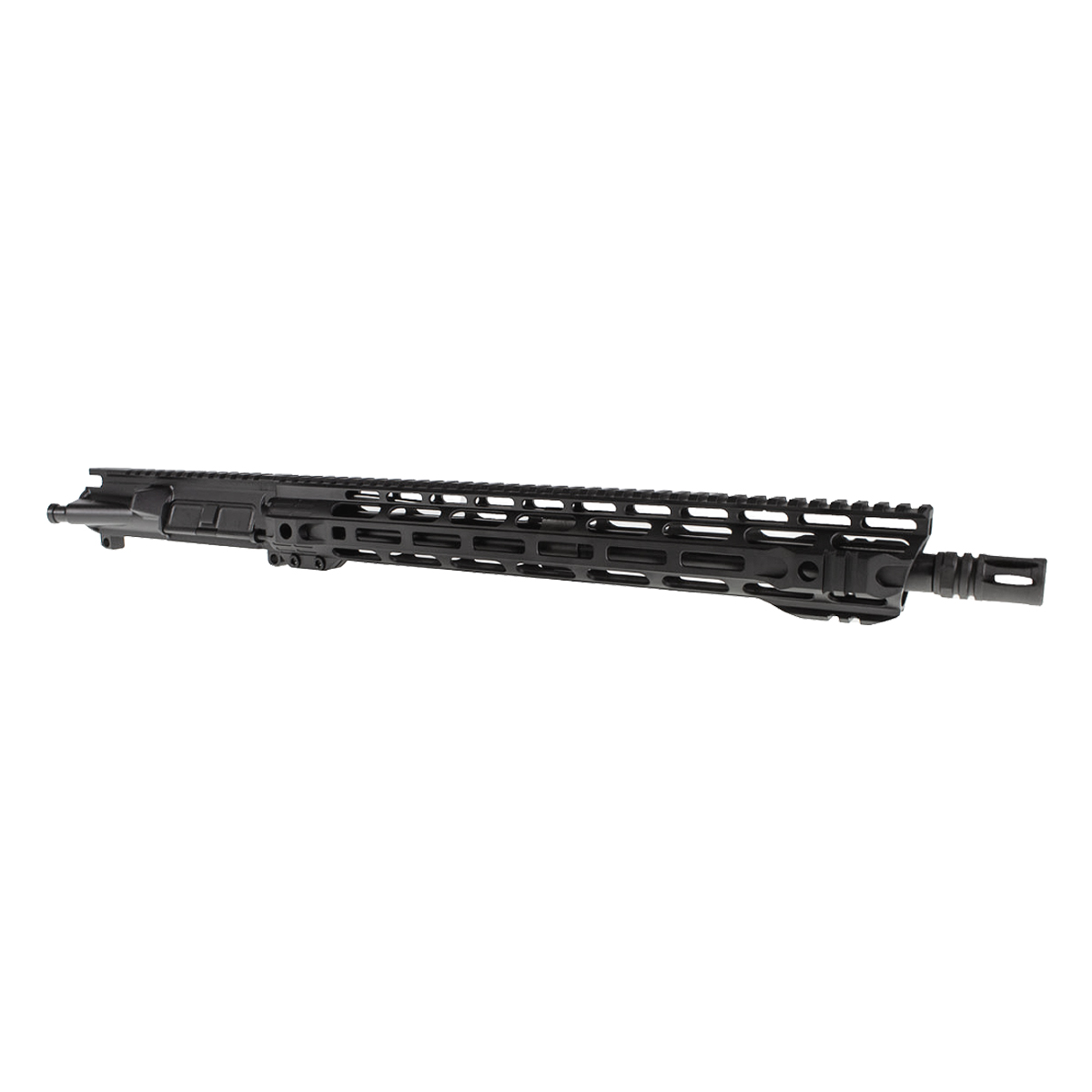 Handguard: 15" M-LOK Slant-Pro Handguard with Built-In QD Mounts, Flat Top, Quad Rail Front, Anti-Rotation Tabs, Oblong Cuts, Series A