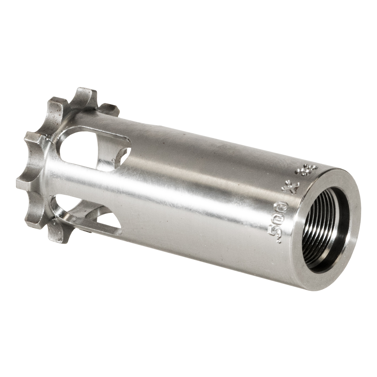 This Nielsen booster piston features heat-treated 17-4 stainless steel construction with 1/2x36 threading for 9mm applications. The piston includes 10 index points for point-of-impact tuning and is compatible with YHM Booster Assembly, YHM Sidewinder M2 suppressors, and many popular pistol suppressors. Interchangeable with pistons from YHM, SilencerCo, Rugged, and Dead Air Odessa pattern. Made in the USA.